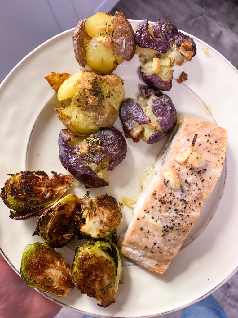 Smashed mini potatoes take a bit more time and effort than regular baked potatoes, but they’re so worth the effort – they have tons of flavor and are perfectly soft on the inside while still crisp on the outside.